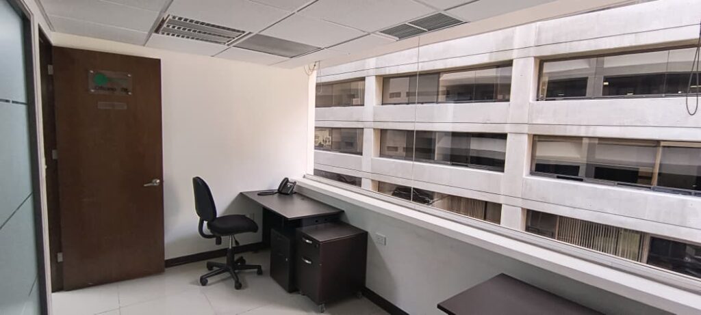 Esta oficina cuenta con dos escritorios para dos personas o si bien prefiere una sola persona.